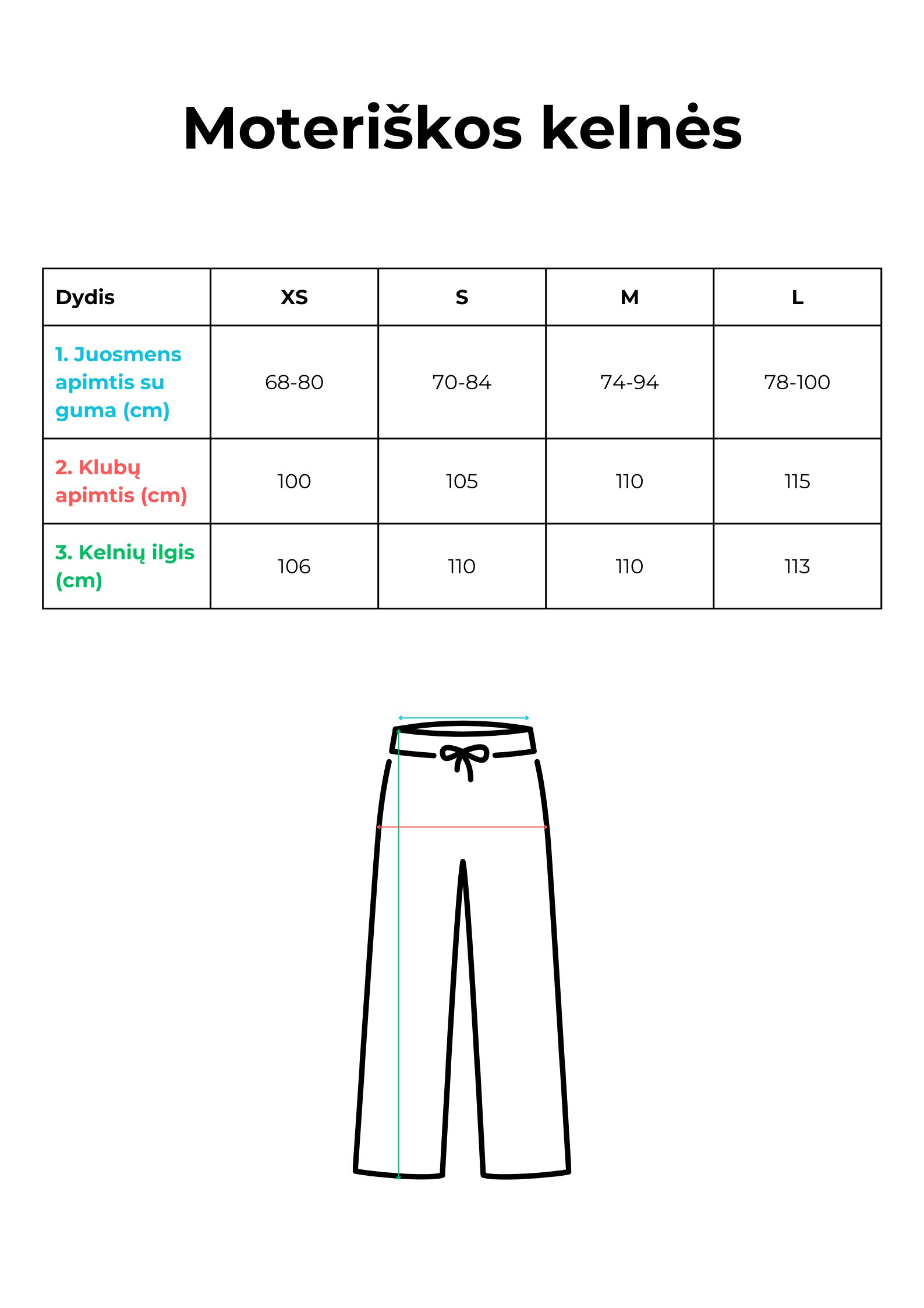 Galime pasiūti pagal standartinius arba jūsų nurodytus išmatavimus. Kelnės yra rankų darbo, siuvamos individualiai tik po jūsų užsakymo. Gaminio išmatavimus rasite aprašyme žemiau.