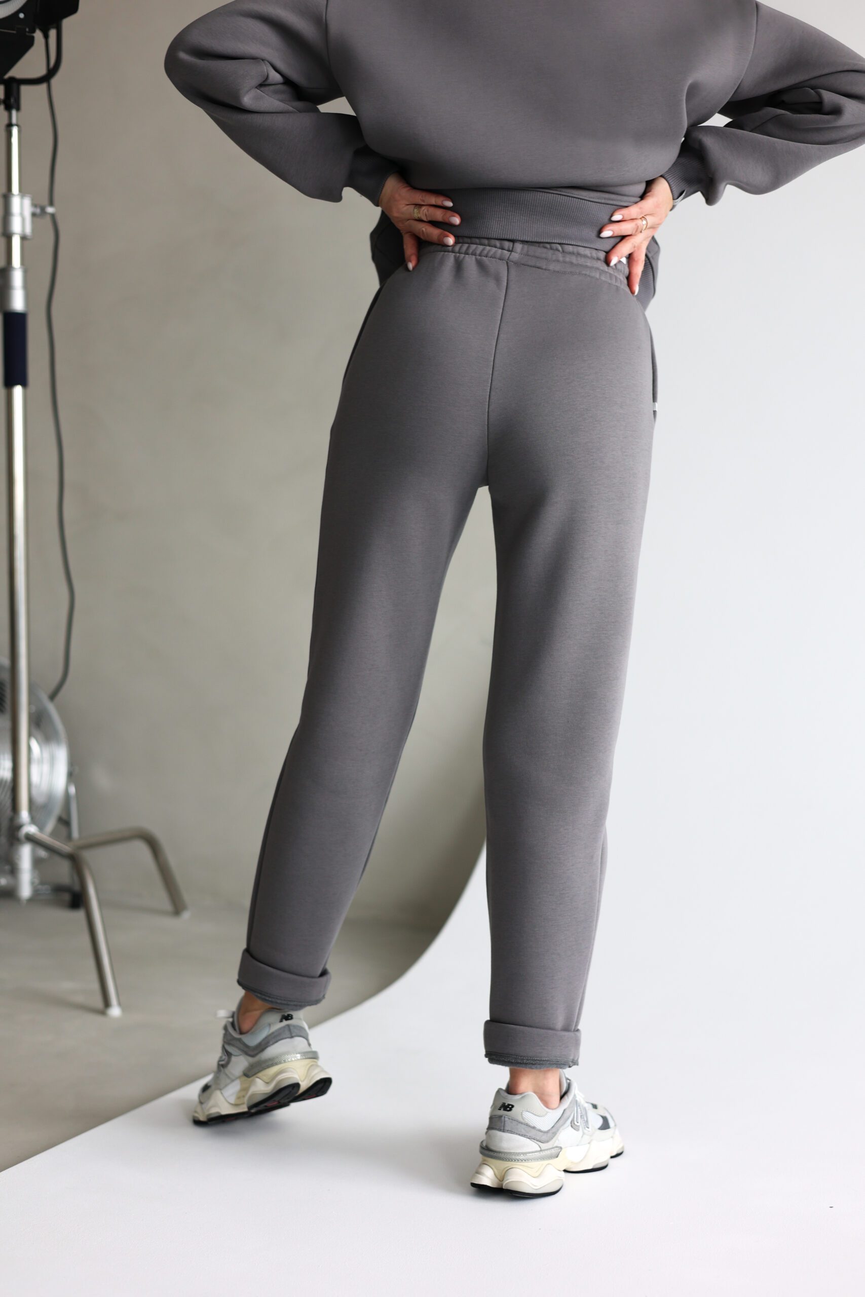 Moteriškos PILKOS siaurėjančios kelnės. Su pūkeliu
