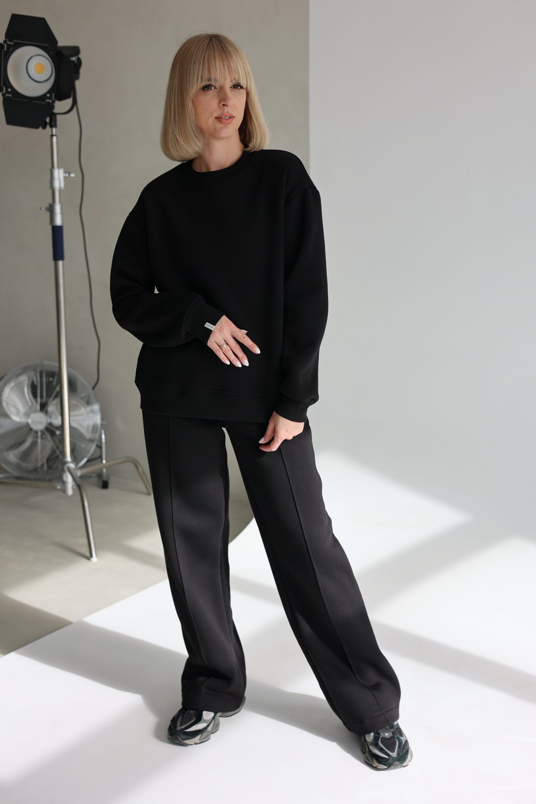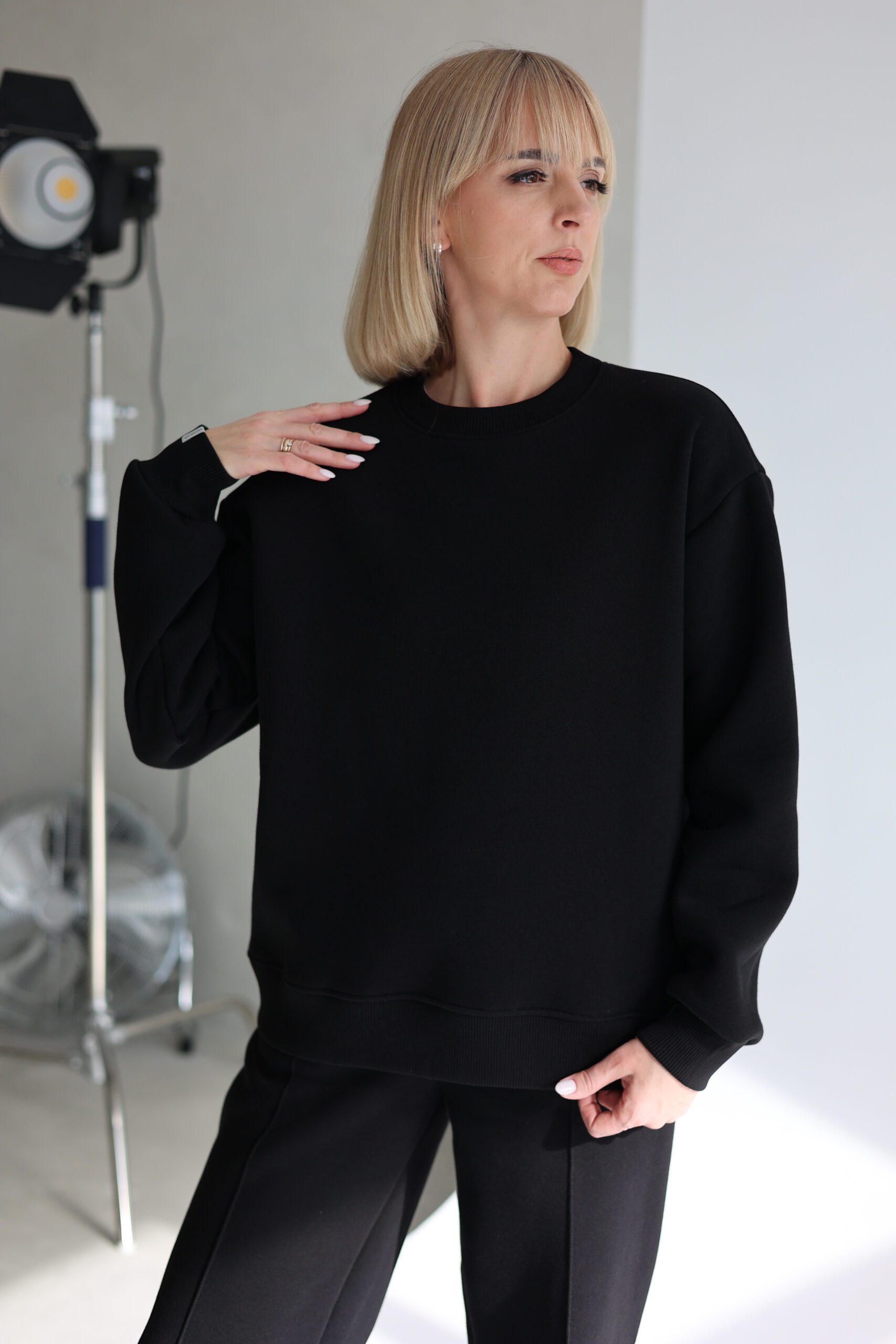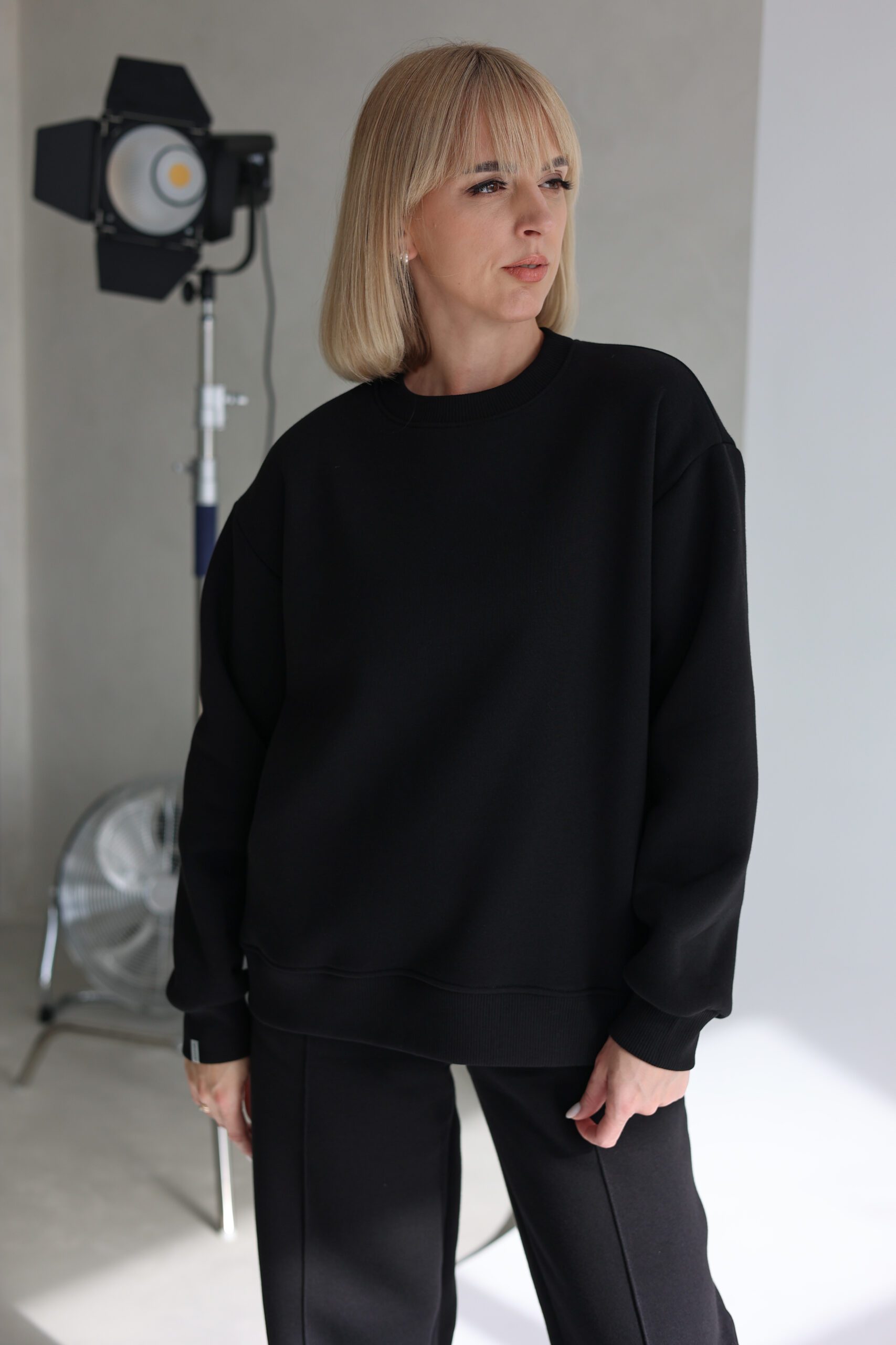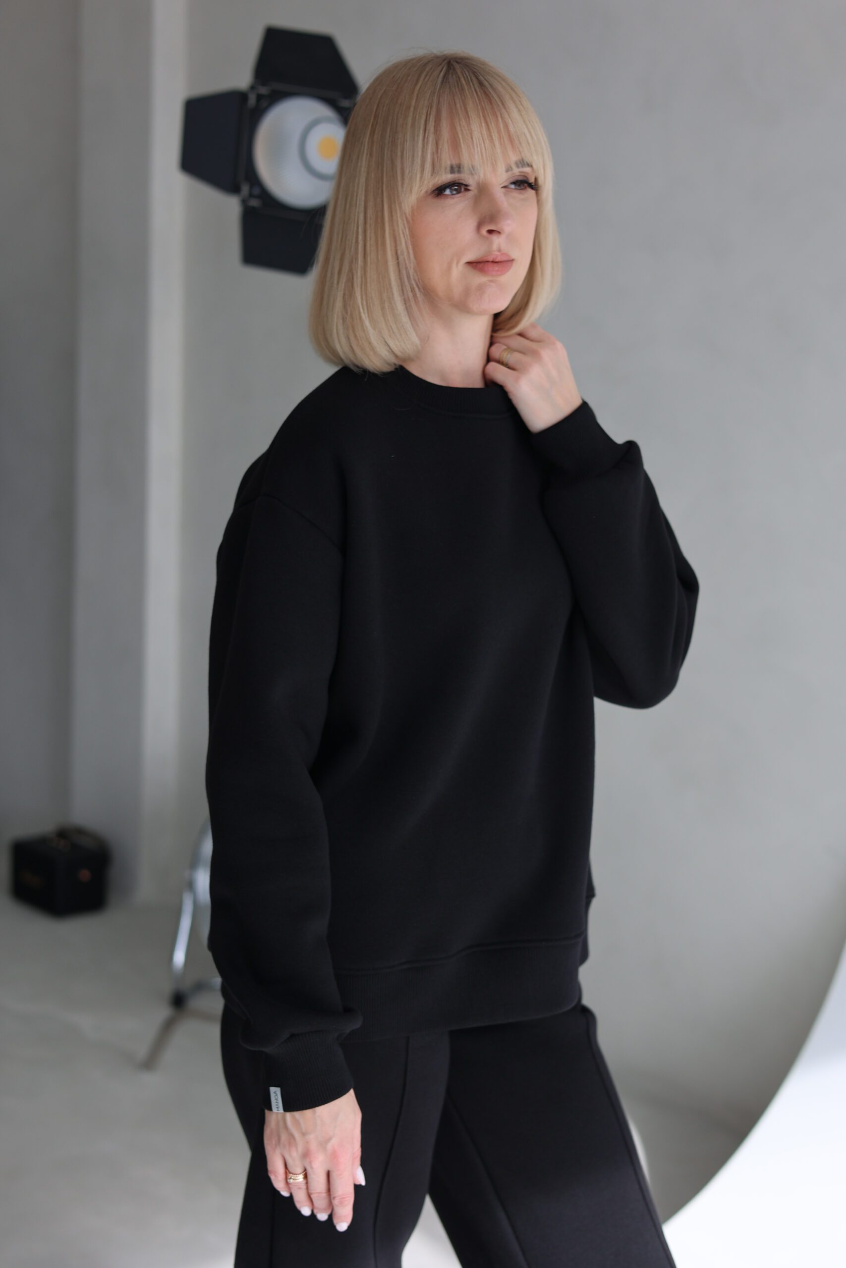 Moteriškas JUODAS džemperis. Su pūkeliu