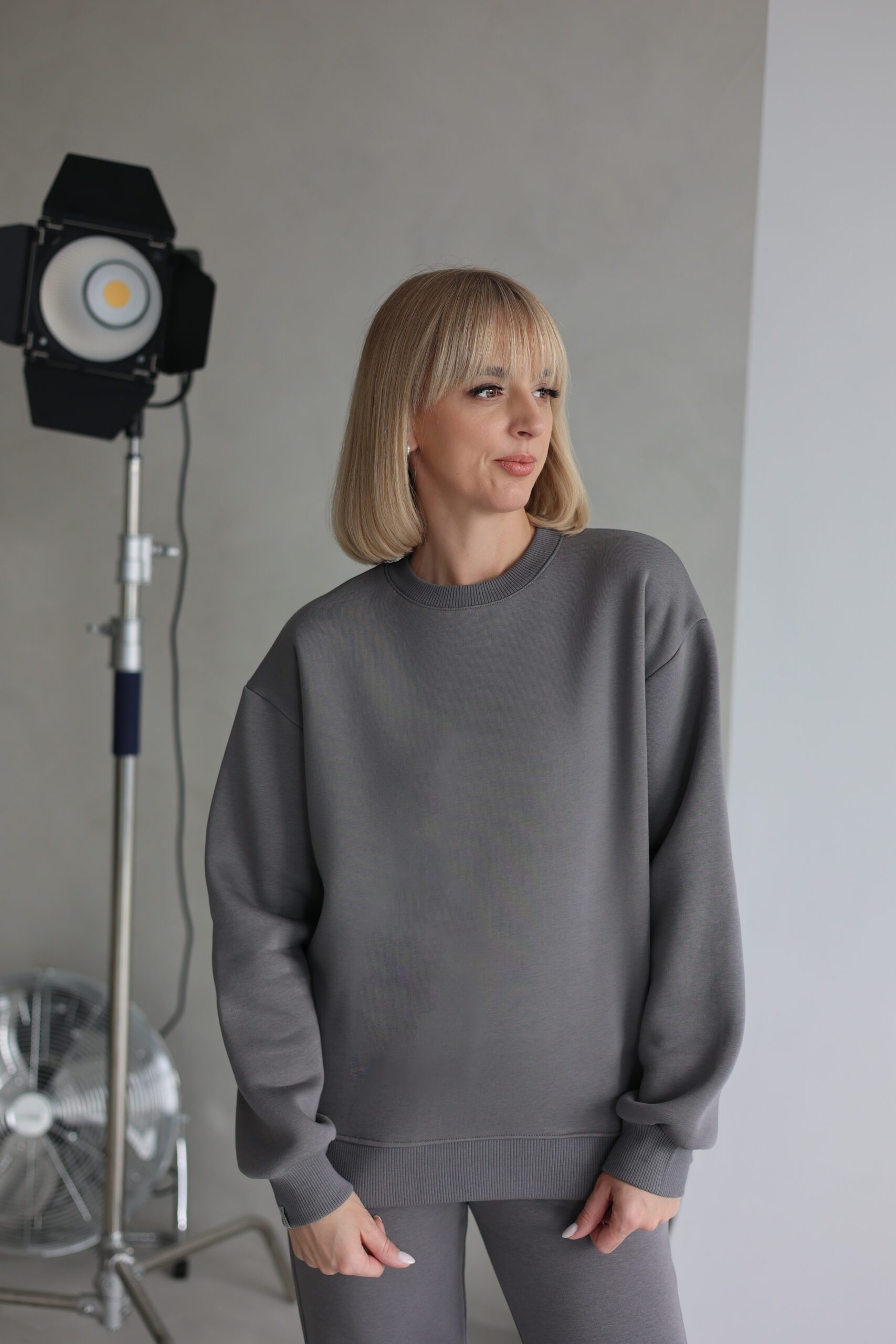 Moteriškas PILKAS džemperis. Su pūkeliu