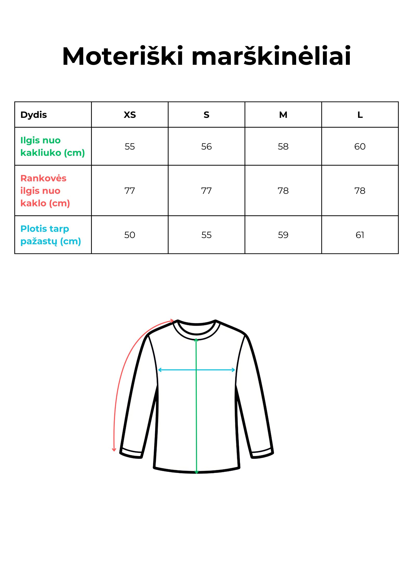 Moteriški marškinėliai DRYŽIAI ilgomis rankovėmis