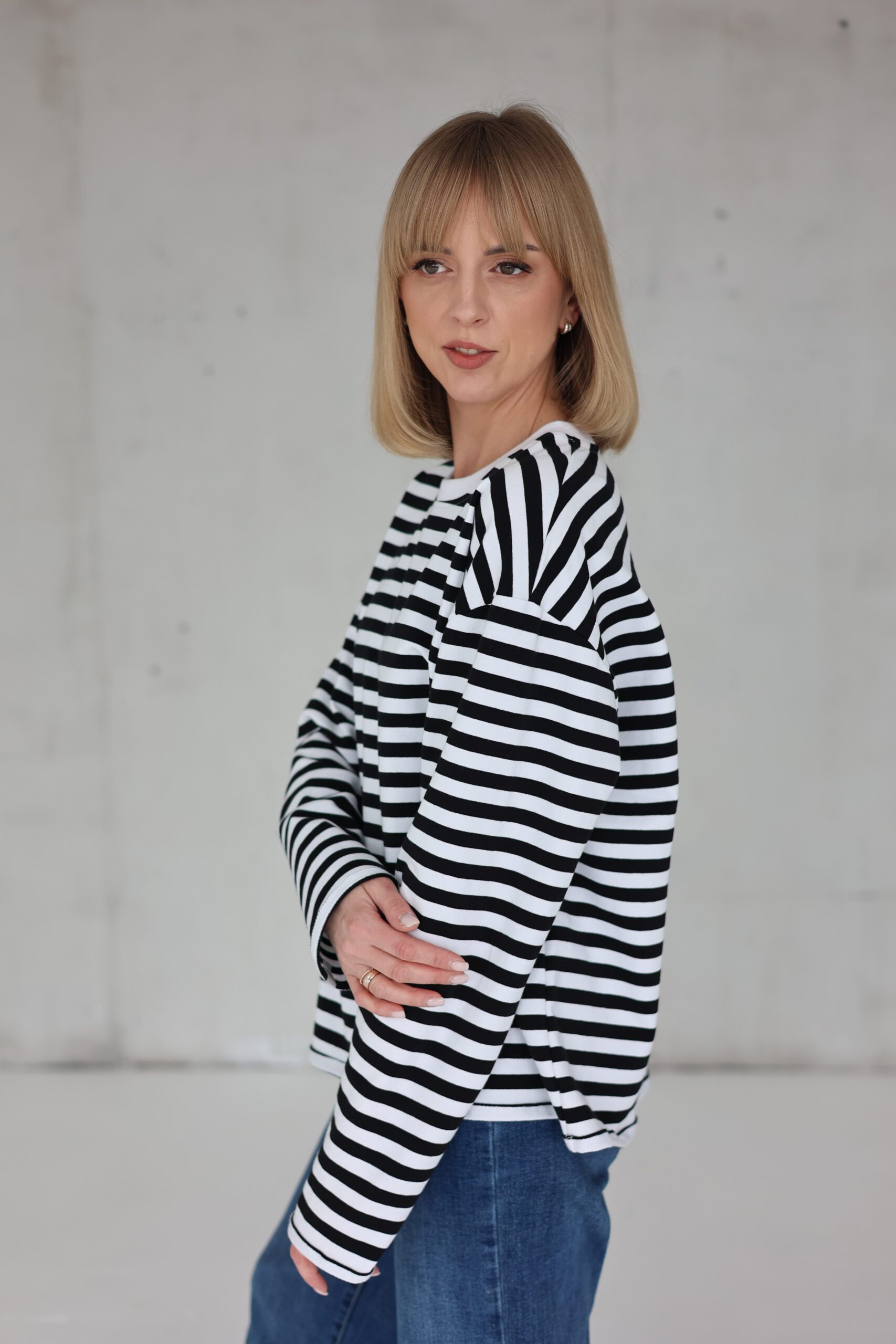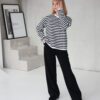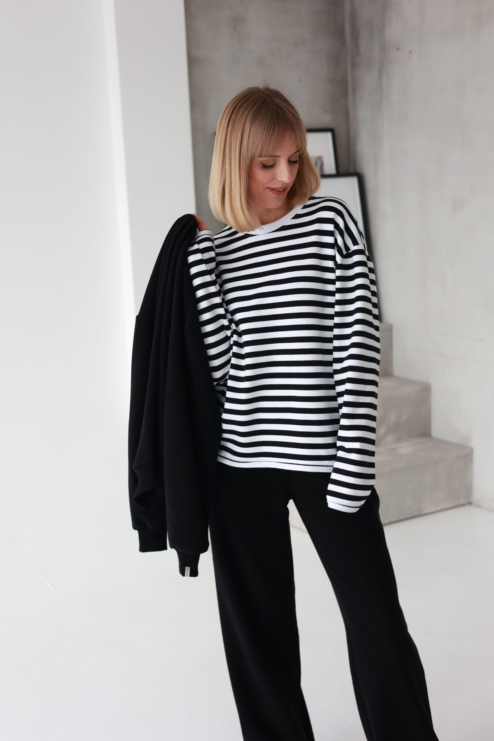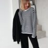 Oversized dryžuoti marškinėliai yra ne tik itin patogūs ir jaukūs, bet ir labai universalūs – puikiai tinka bet kokiai progai ir bet kokiam stiliui.