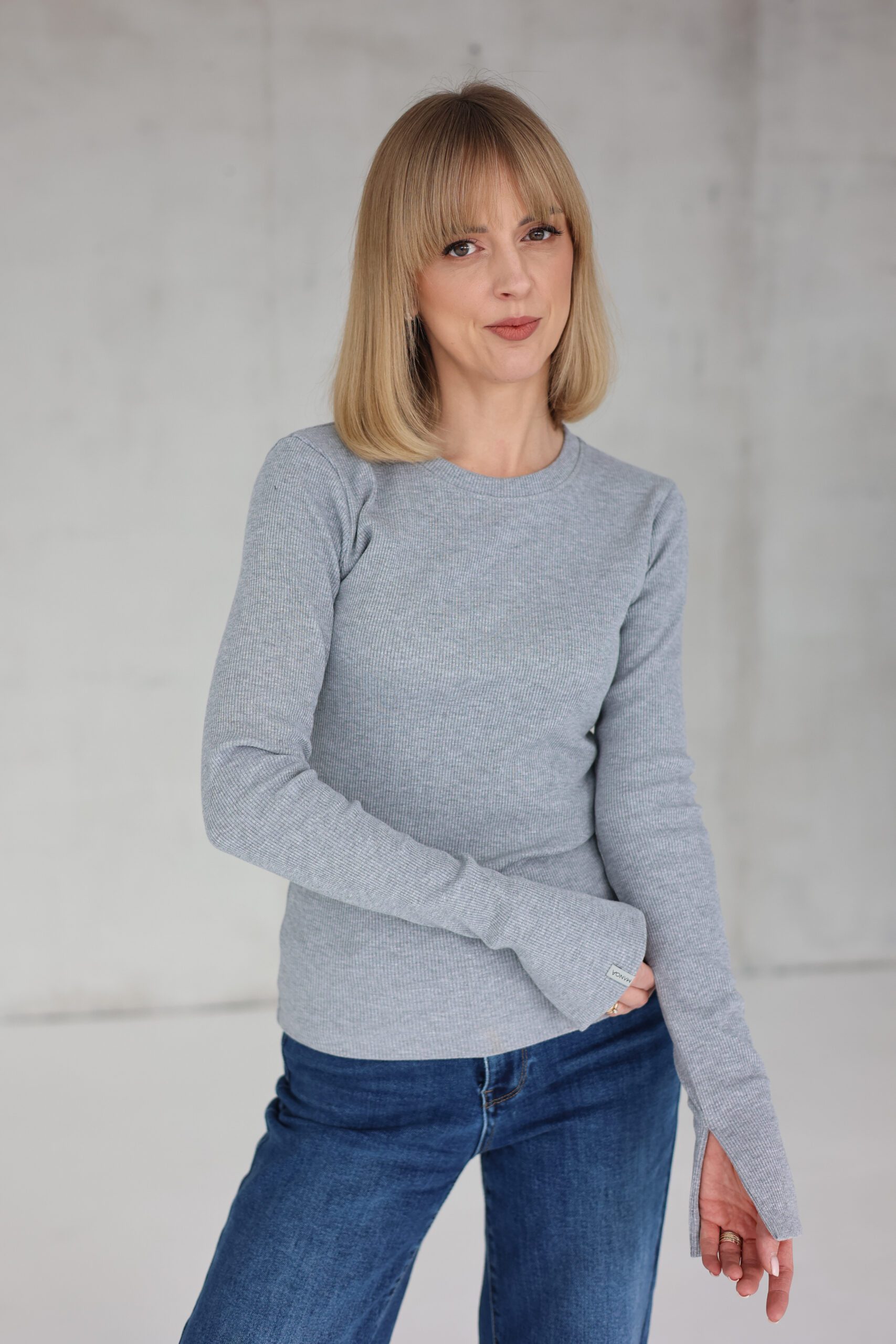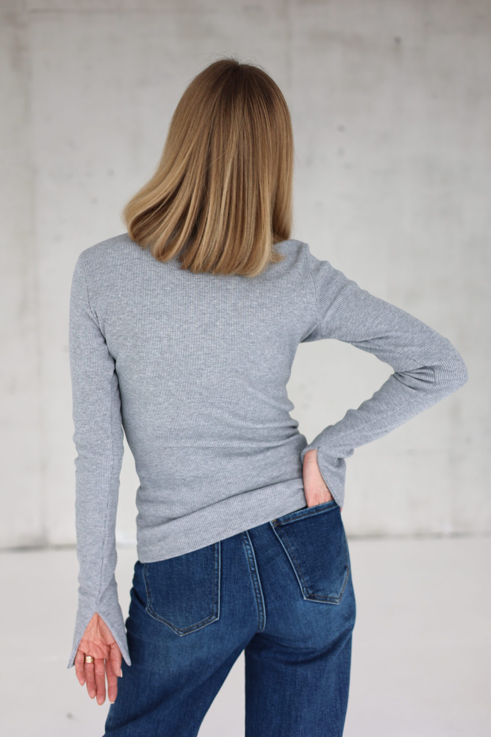 Moteriški ribb trikotažo marškinėliai su skeltukais PILKI