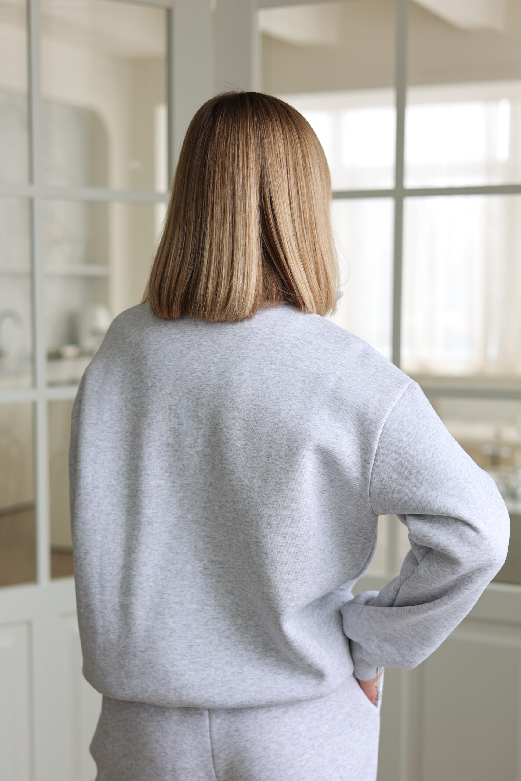 Džemperis siuvamas individualiai – galite rinktis variantą su pūkeliu (daugiau šilumos ir jaukumo) arba be pūkelio (lengvesnis, tinkamas dėvėti ištisus metus).
