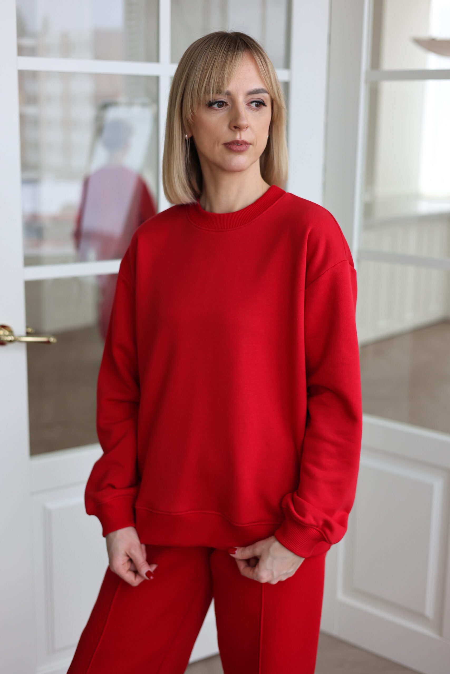 Sodri raudona spalva suteikia įvaizdžiui charakterio, energijos ir savitumo – tai drabužis, kuris kalba apie pasitikėjimą savimi. Džemperis pasiūtas iš kokybiškos medvilnės audinio, kuris yra malonus kūnui, laidus orui, lengvai prižiūrimas ir ilgaamžis.