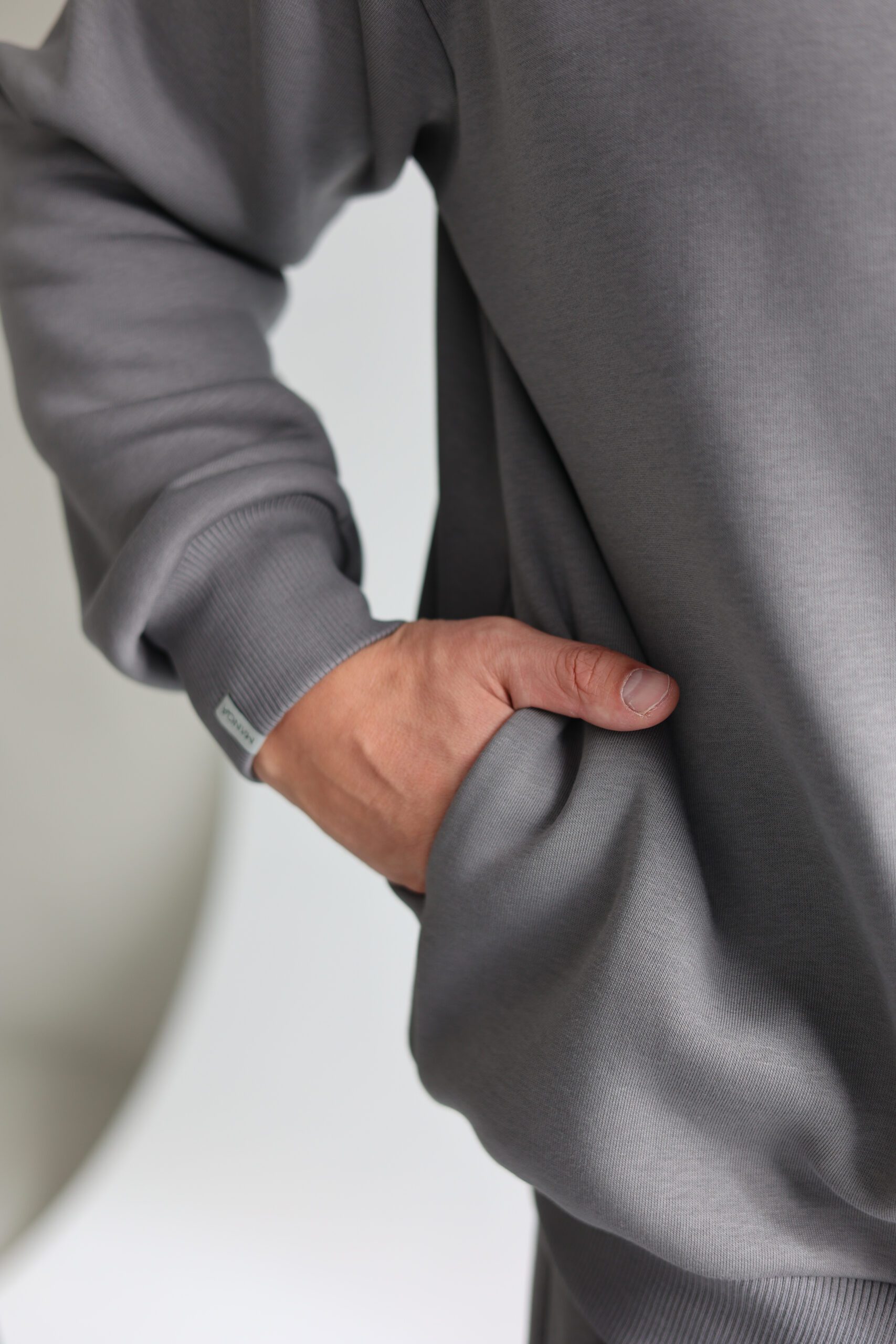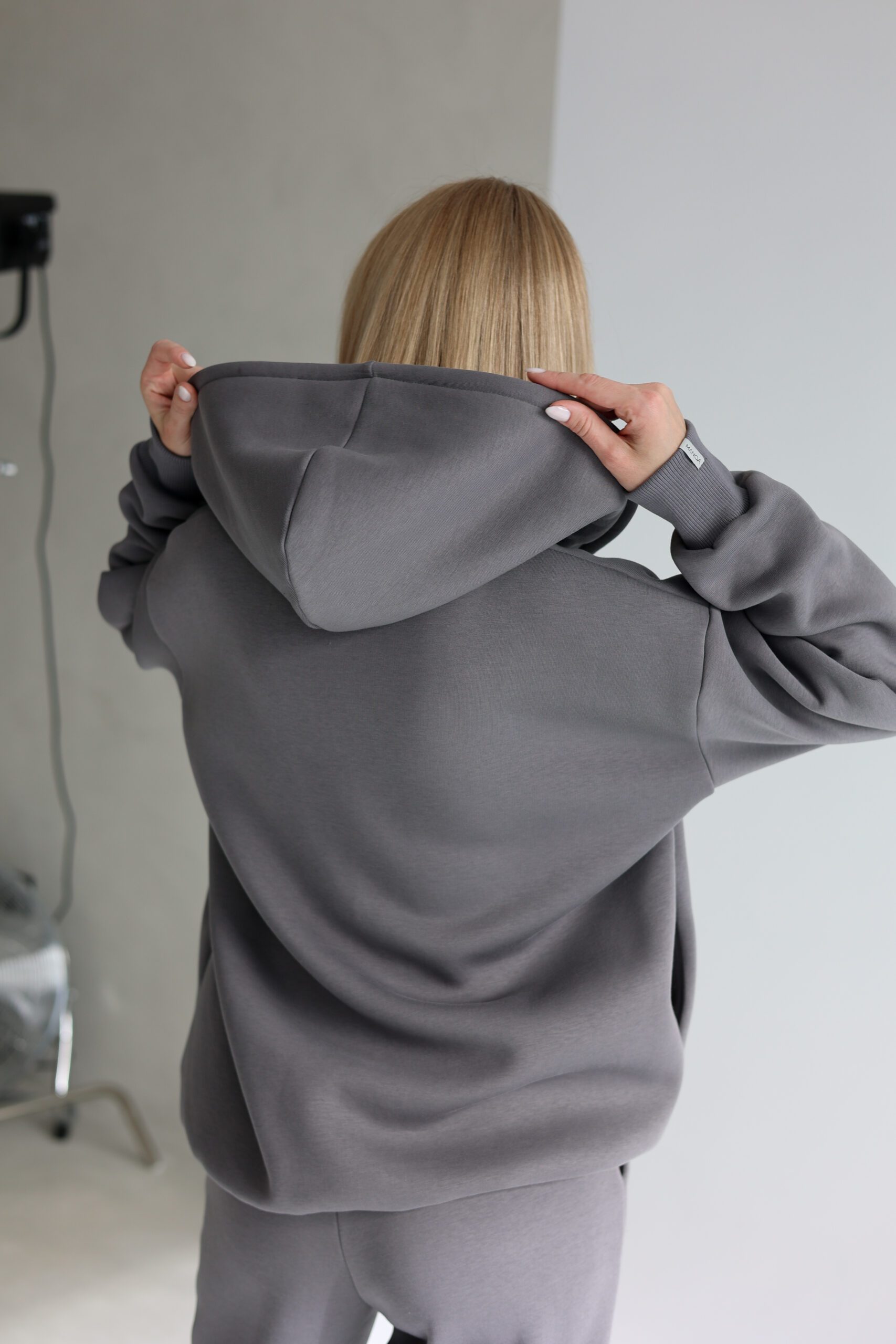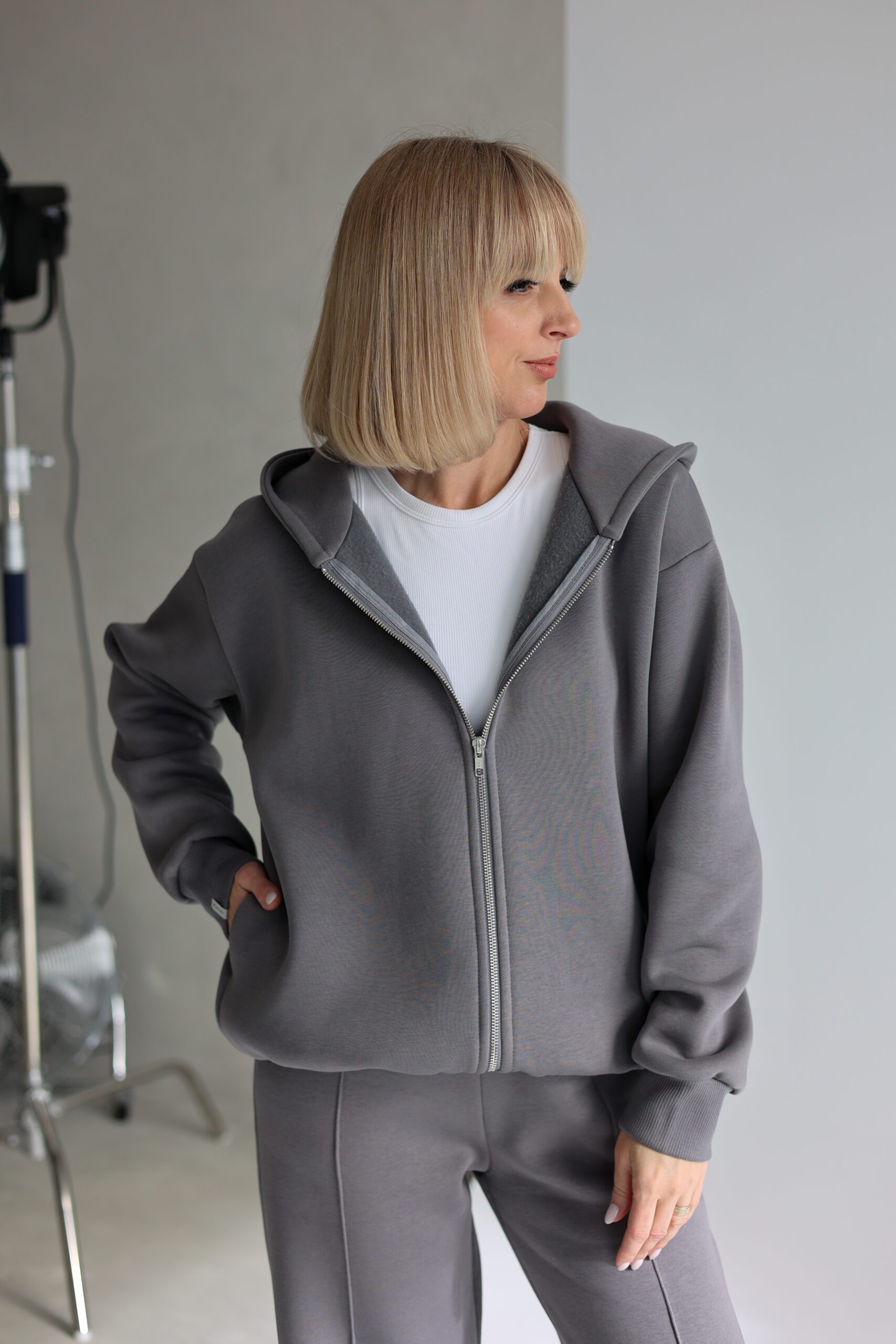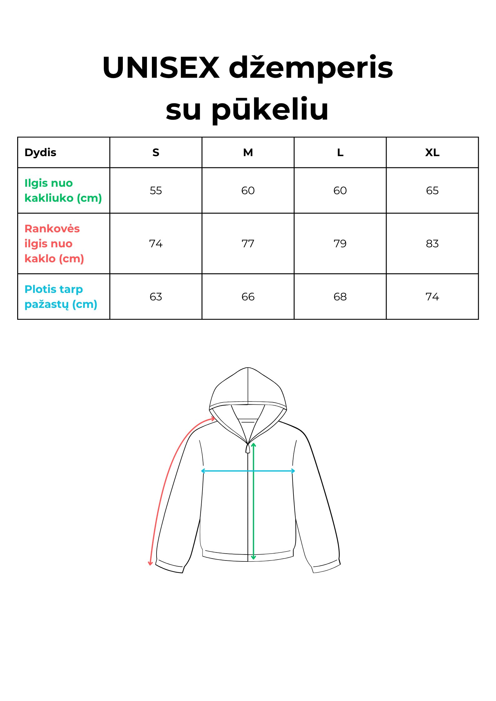 Siūtas iš minkšto medvilninio trikotažo su pūkeliu, jis šildo ir užtikrina komfortą, tačiau išlieka lengvas ir nevaržantis judesių. Kokybiškas YKK užtrauktukas užtikrina kokybę, o erdvus kapišonas suteikia papildomo jaukumo ir stiliaus, bei su kišenėmis. Džemperio dizainas minimalistinis, todėl jį lengva priderinti prie įvairių kelnių ar net paltų. Klasikinė spalva, kuri dera prie visko.
