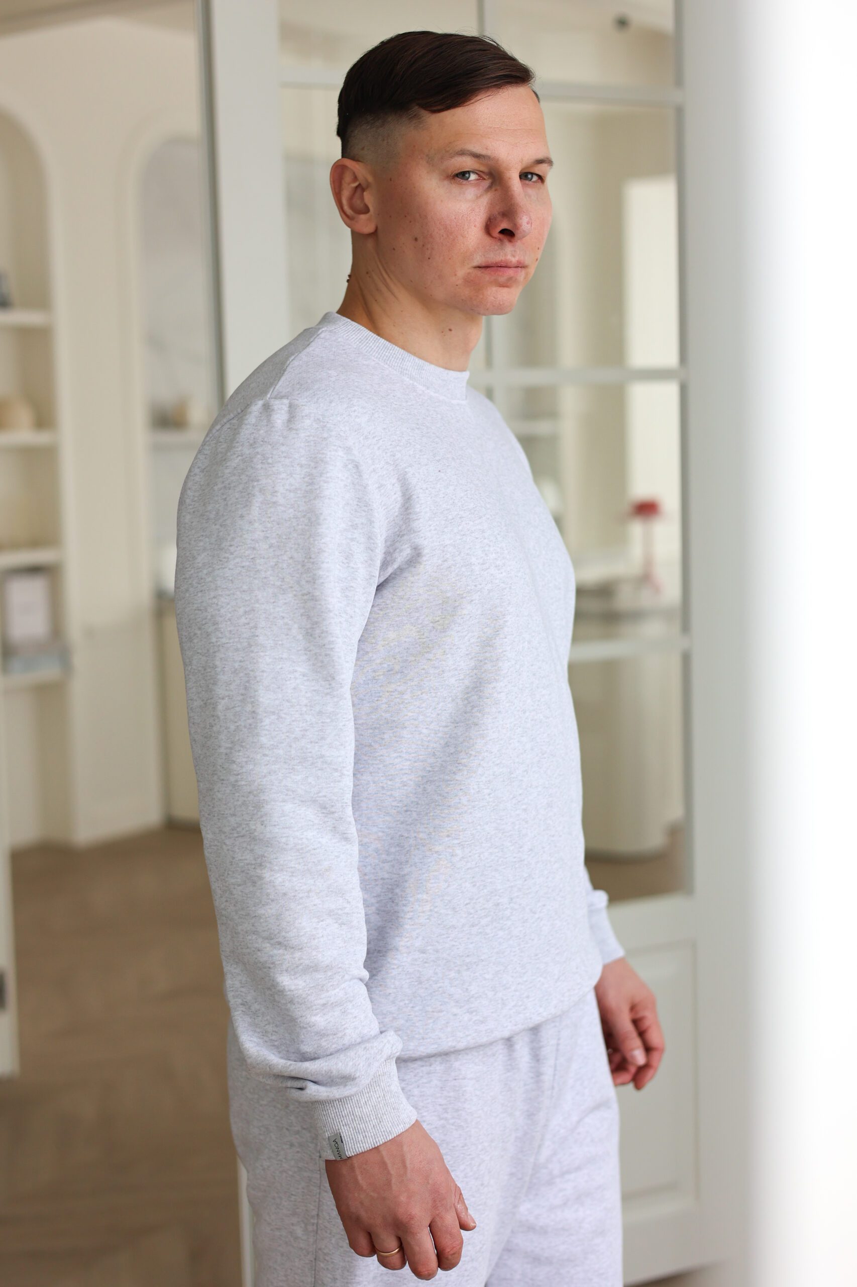 Klasikinio modelio, šiek tiek oversized džemperis suteikia judėjimo laisvę, stilių ir komfortą, todėl puikiai tinka kasdieniam dėvėjimui. Šviesiai pilka (melanžo) spalva – universali, neįpareigojanti ir lengvai derinama prie įvairaus stiliaus drabužių. Siuvamas iš kokybiškos medvilnės, kuri yra maloni kūnui, laidi orui ir užtikrina lengvą priežiūrą bei ilgaamžiškumą.