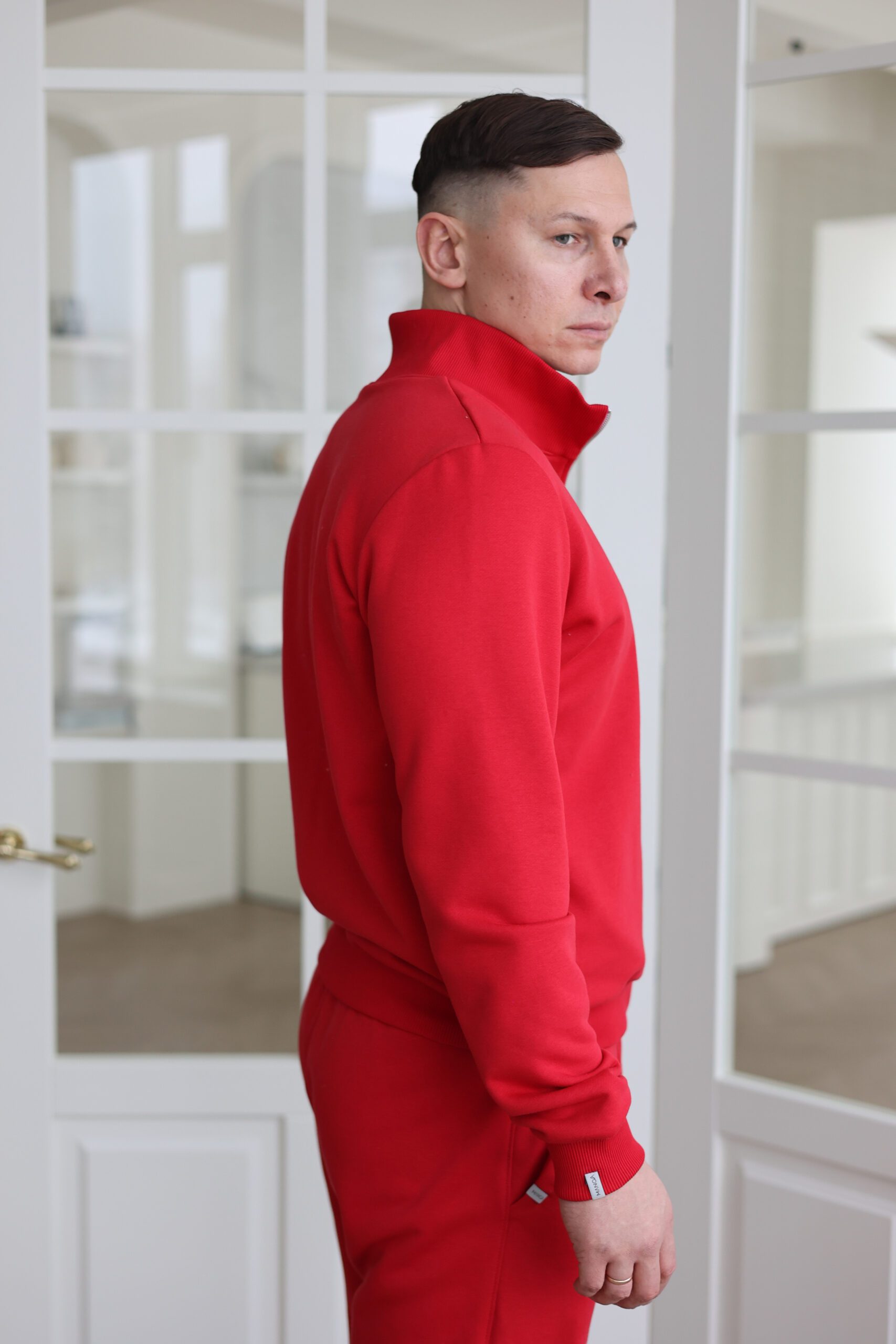 Džemperis pasiūtas iš kokybiškos medvilnės audinio, kuris yra malonus kūnui, laidus orui ir lengvai prižiūrimas. Audinys išlaiko formą ir estetinę išvaizdą net po daugelio skalbimų. Sodri raudona spalva suteikia įvaizdžiui charakterio ir išskirtinumo, kartu išlaikant universalumą kasdieniams deriniams.