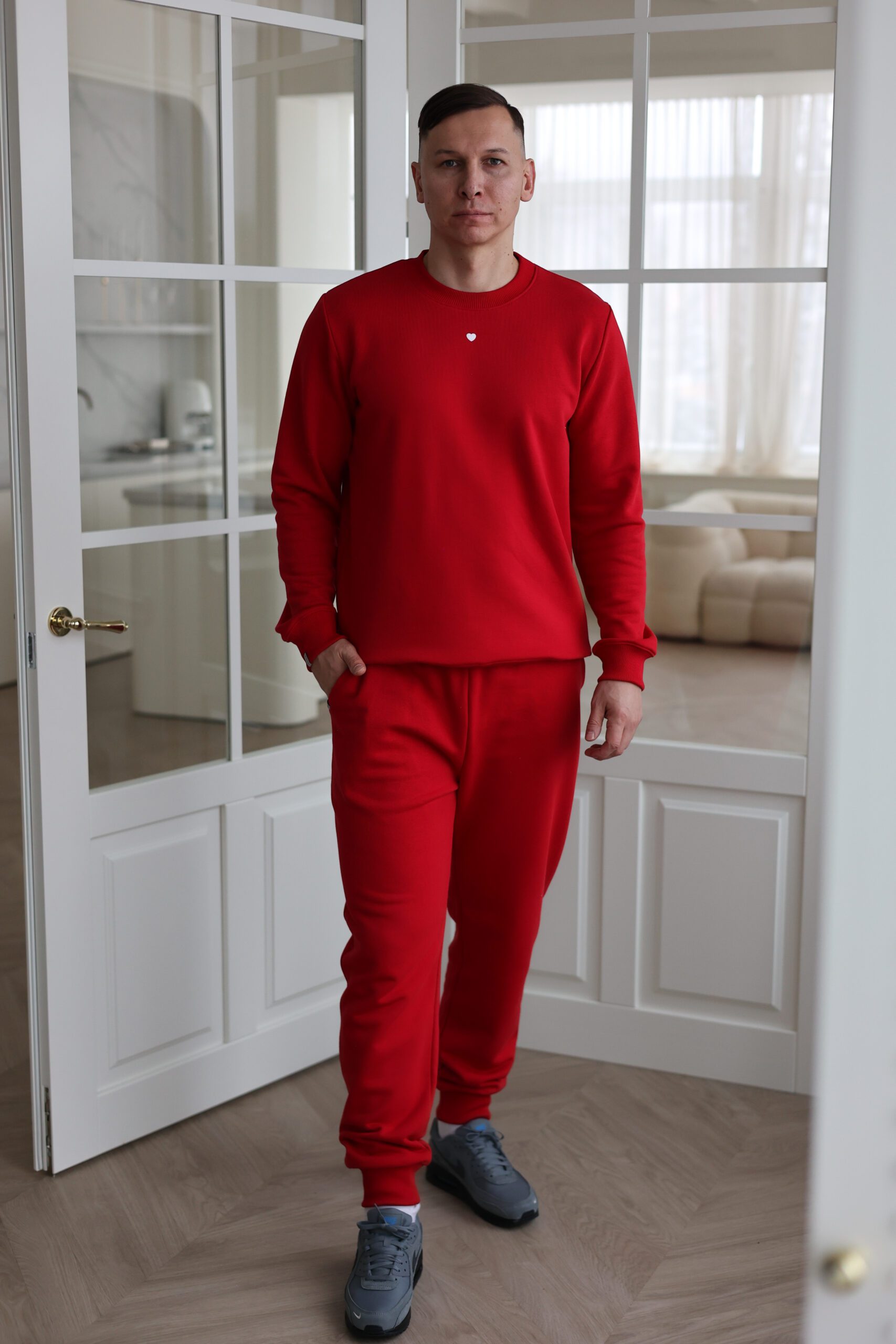 Sodri raudona spalva suteikia įvaizdžiui charakterio ir išskirtinumo – tai spalva, kuri neliks nepastebėta. Džemperis siuvamas iš kokybiškos medvilnės, kuri yra maloni kūnui, laidi orui, lengvai prižiūrima ir ilgaamžė – sukurta aktyviam, kasdieniam dėvėjimui.