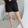 Šortai pasiūti iš kokybiško medvilnės audinio, kuris yra malonus odai, laidus orui ir užtikrina komfortą visos dienos metu. Minkšta ribb medžiaga juosmens srityje suteikia patogų prigludimą ir nevaržo judesių.